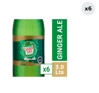 6x Bebida Canada Dry Ginger Ale Botella 3L