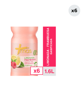 Pack 6 Aguas Saborizada Mas Limonada Frambuesa Botella 1.6L