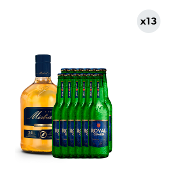 Pack Pisco Mistral 35° 750cc + 12x Cerveza Royal Guard 5.0° Botella 355cc